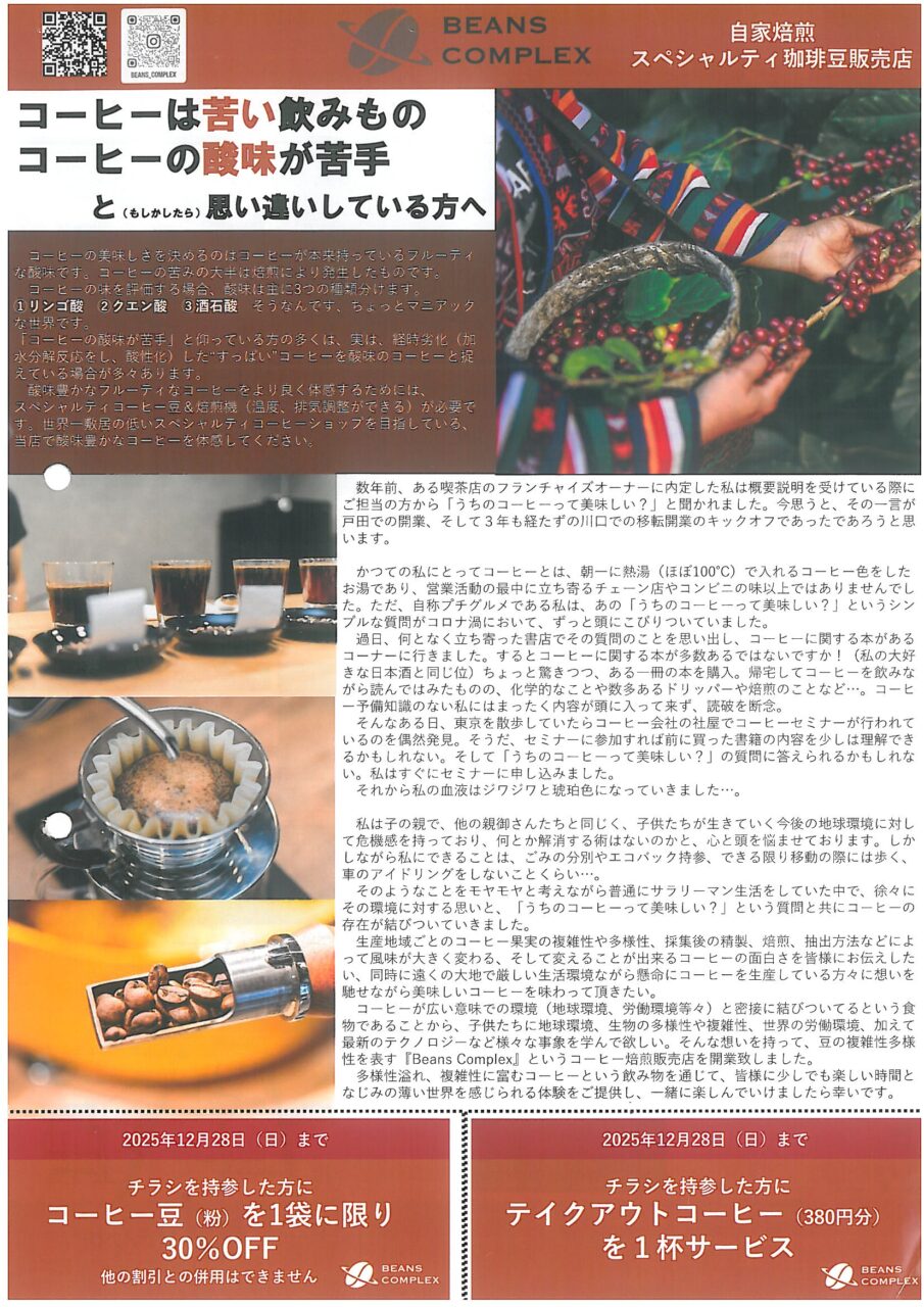 同じ川口市内で自家焙煎をされているBEANS COMPLEX様とのご縁があり、オリジナルディップスタイルコーヒーを制作しました。